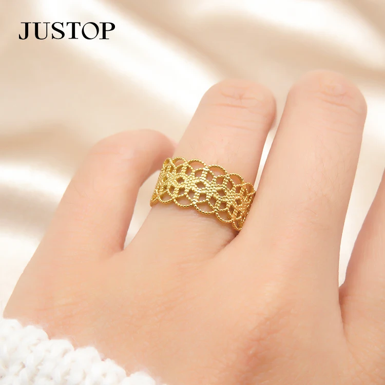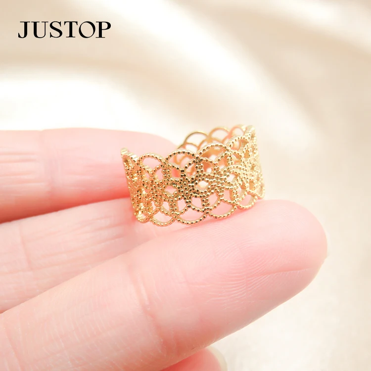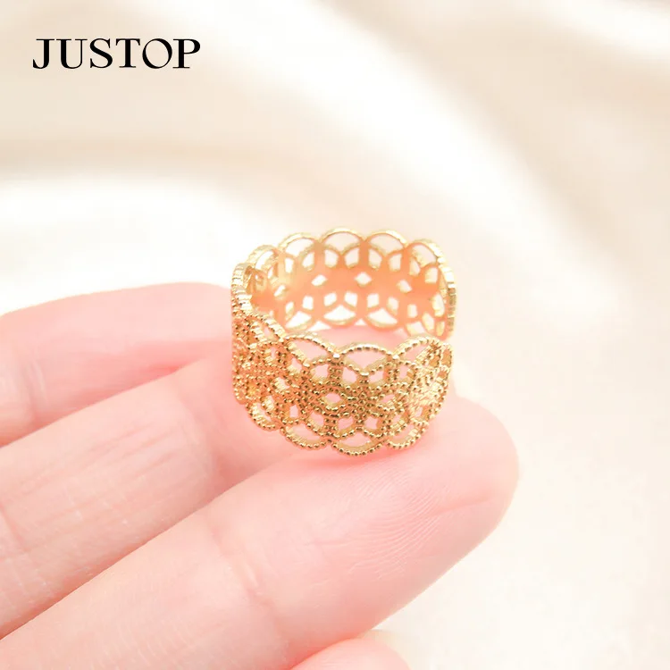 Valentine's Day Love Ring Hypoallergenic Brass Copper Lace Design Real 18K Gold Coated Couple Rings for Women Perfect Gift for